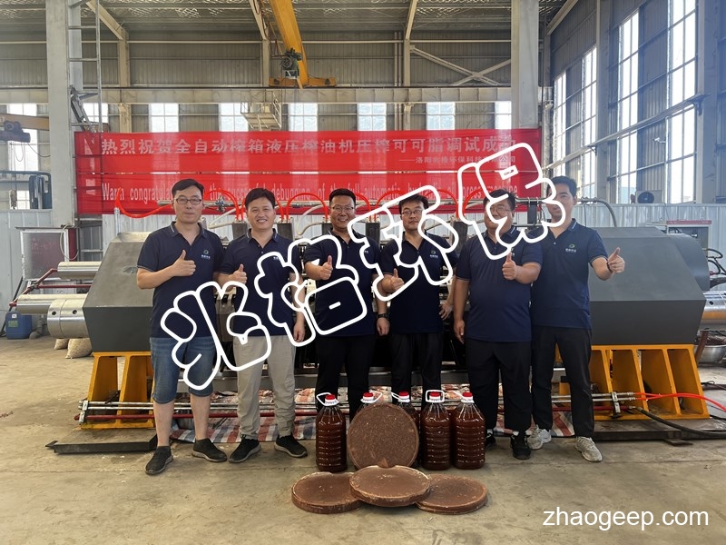 兆格環(huán)保全自動(dòng)液壓榨油機(jī)壓榨可可脂試機(jī)成功