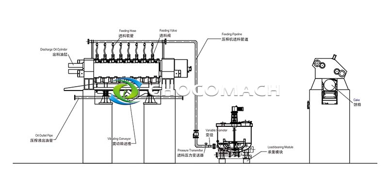 (3)茶籽等需要完全脫殼后固體顆粒和流體漿料兩種工藝連續(xù)低溫液壓壓榨(75℃以內(nèi)),無(wú)需使用濾布/濾袋包覆做餅,全自動(dòng)操作,可以實(shí)現(xiàn)大處理量、低餅粕殘油,連續(xù)生產(chǎn)的粉油聯(lián)產(chǎn)項(xiàng)目。