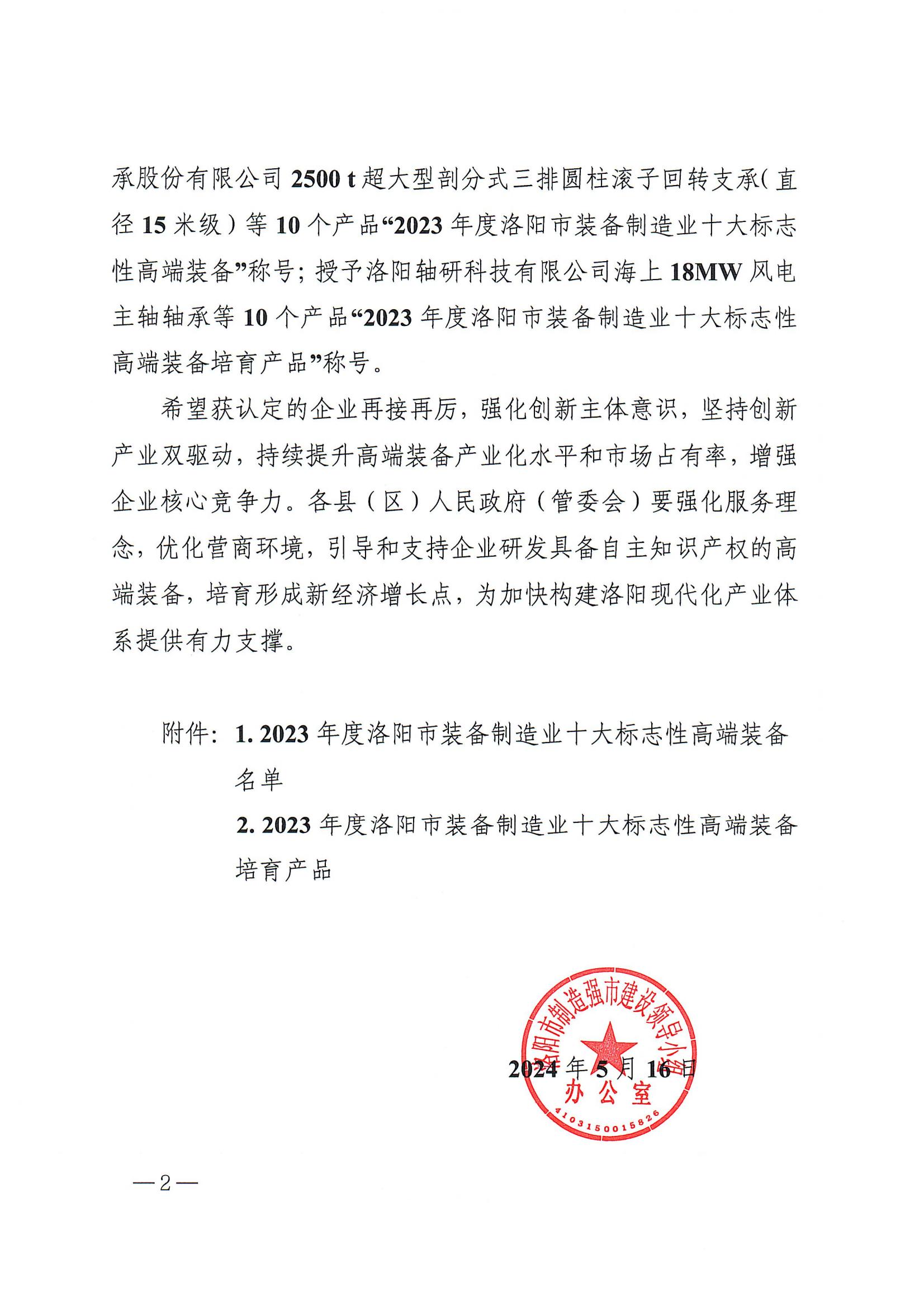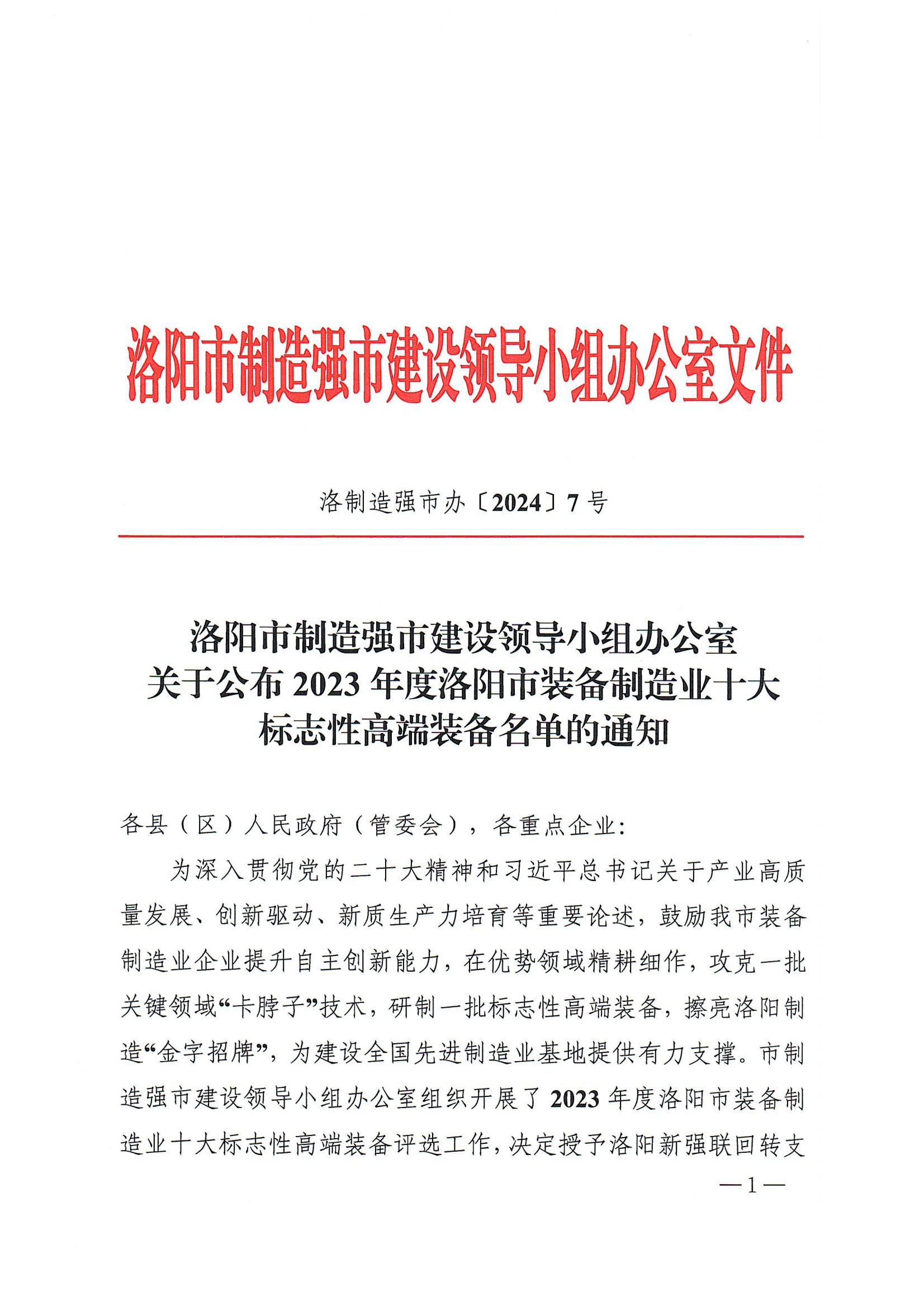 為深入貫徹黨的二十大精神和習(xí)近平總書記關(guān)于產(chǎn)業(yè)高質(zhì)量發(fā)展、創(chuàng)新驅(qū)動、新質(zhì)生產(chǎn)力培育等重要論述,洛陽市制造強市建設(shè)領(lǐng)導(dǎo)小組辦公室組織開展了2023年度洛陽市裝備制造業(yè)十大標志性高端裝備評選工作。此次榮譽評審一是鼓勵洛陽裝備制造業(yè)企業(yè)不斷提升自主創(chuàng)新能力;二是鼓勵企業(yè)在優(yōu)勢領(lǐng)域精耕細作,攻堅克難攻克一批關(guān)鍵領(lǐng)域“卡脖子”技術(shù),三是研制一批標志性高端裝備,擦亮洛陽制造“金字招牌”。祝賀洛陽兆格環(huán)保科技有限公司榮獲2023年度洛陽市裝備制造業(yè)十大標志性高端裝備培育產(chǎn)品認定,為建設(shè)全國先進制造業(yè)基地提供有力支撐添磚加瓦。