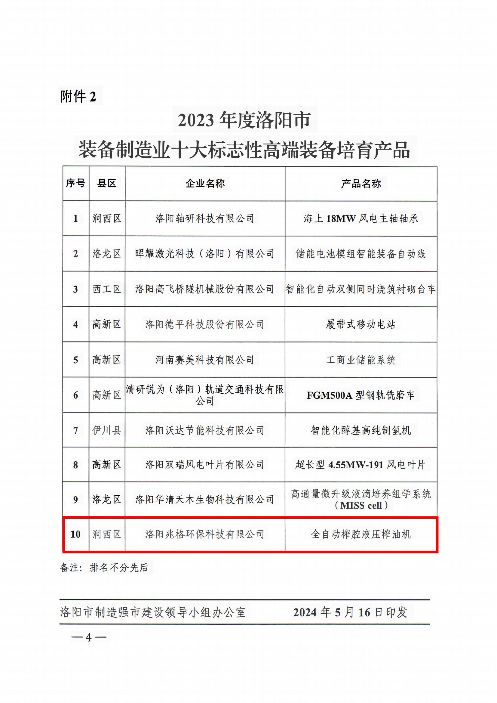 祝賀兆格環(huán)保獲2023年度洛陽市裝備制造業(yè)十大標志性高端裝備培育產(chǎn)品認定