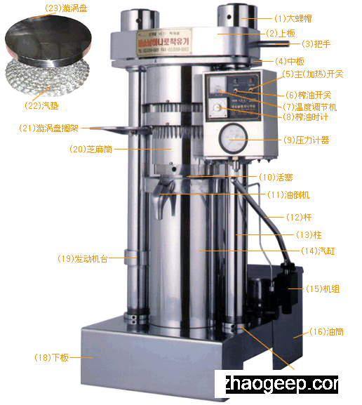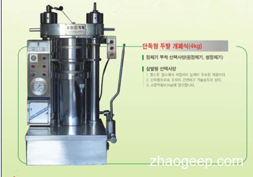 上世紀90年代,韓國人成功研發(fā)并生產了快速液壓香油機,又稱為韓式香油機。該機型主要采用液壓油缸,采用油線式料筒,充分改變了傳統(tǒng)的古法壓榨香油工藝,使芝麻經過篩選、炒制、除煙之后直接壓榨成香油,效率非常高。同時一次可以加工幾斤到10幾斤不等,加工一次時間8-10分鐘,用戶購買芝麻可以現(xiàn)場加工,一方面確保所榨香油為新鮮香油,另一方面用戶自己購買芝麻或種植芝麻可以隨吃隨榨,最重要的是現(xiàn)場壓榨從很大程度上解決了香油摻假的問題,一經上市深受廣大用戶喜愛。