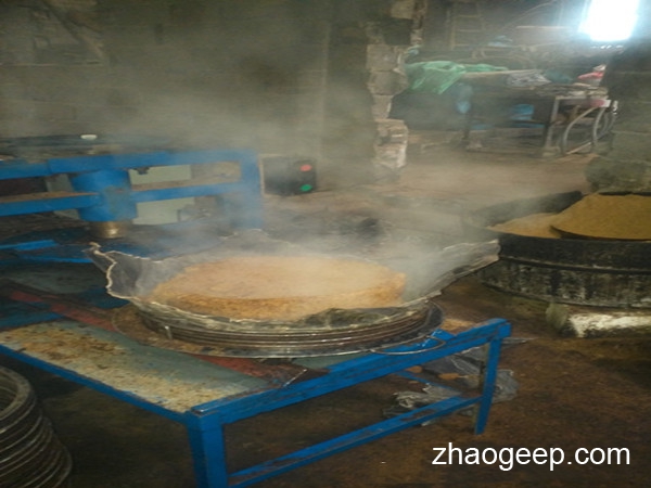 蒸制是關鍵,確保茶籽完全整透的同時,水分不能過大。這個絕對是經(jīng)驗?,F(xiàn)在通用的做法是采用汽水兩用鍋爐燒蒸汽后單鍋單鍋蒸制。