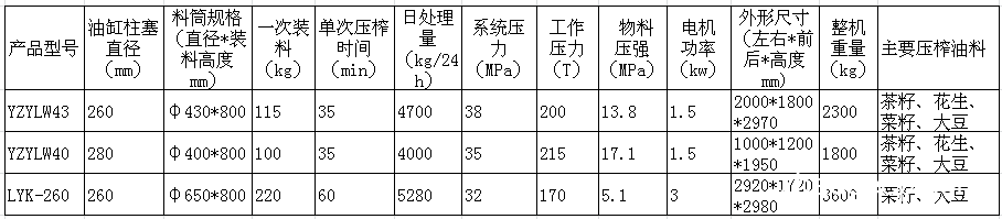 3、YZYL43型液壓榨油機配備預(yù)壓缸和推拉缸;YZYL40型液壓榨油機沒有配備預(yù)壓缸和推拉缸,都可以選配;LYK-260榨油機僅配備預(yù)壓缸,沒有配備推拉缸。