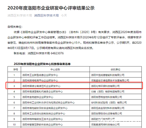 熱烈祝賀兆格環(huán)保通過洛陽市固液分離液壓機(jī)企業(yè)研發(fā)中心