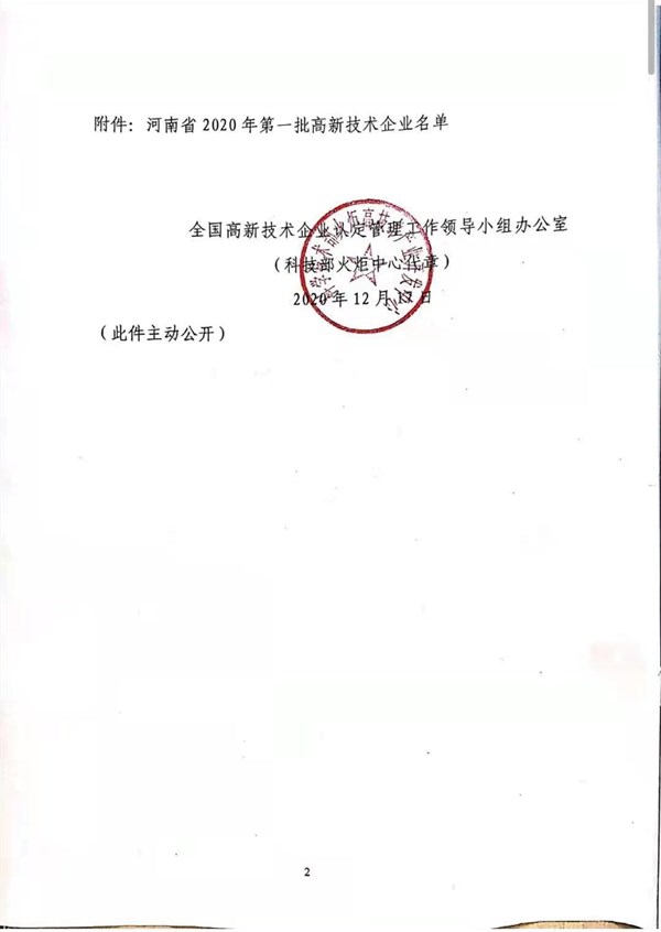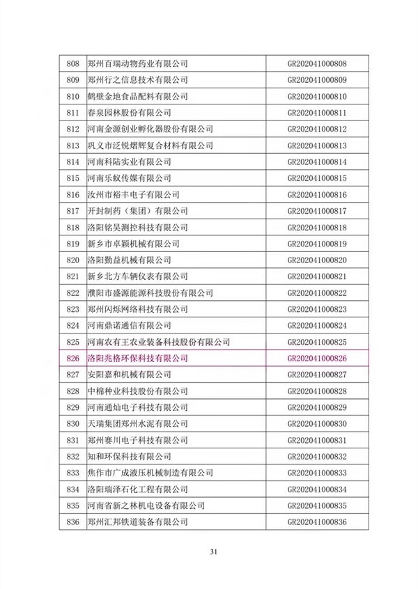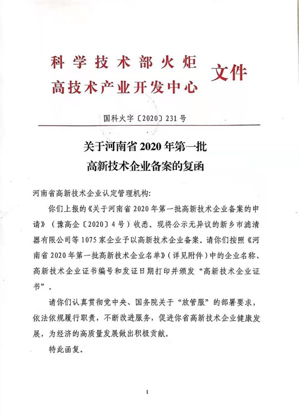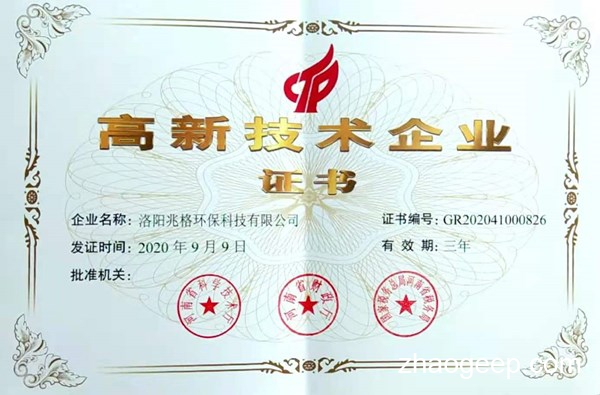 洛陽兆格環(huán)保科技有限公司自2018年開始籌備高新技術(shù)企業(yè)培育工作,高新技術(shù)企業(yè)認(rèn)定伴隨著企業(yè)發(fā)展,經(jīng)過3個(gè)年度的努力,2020年6月兆格環(huán)保提報(bào)了2020年一批次高新技術(shù)企業(yè)認(rèn)定審核,并且順利通過。2020年12月科學(xué)技術(shù)部火炬高技術(shù)產(chǎn)業(yè)開發(fā)中心復(fù)函,自此兆格高新技術(shù)企業(yè)編號(hào)確定為GR202041000826。高新技術(shù)企業(yè)證書于2021年1月領(lǐng)取。