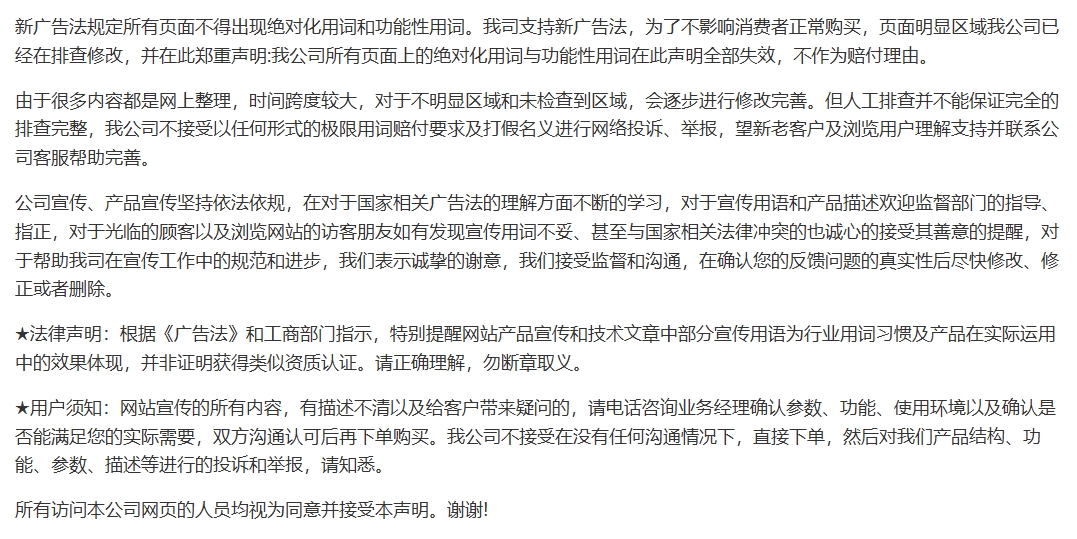關(guān)于極限詞、絕對性用詞與功能性用詞等廣告法禁用詞失效和免責(zé)聲明