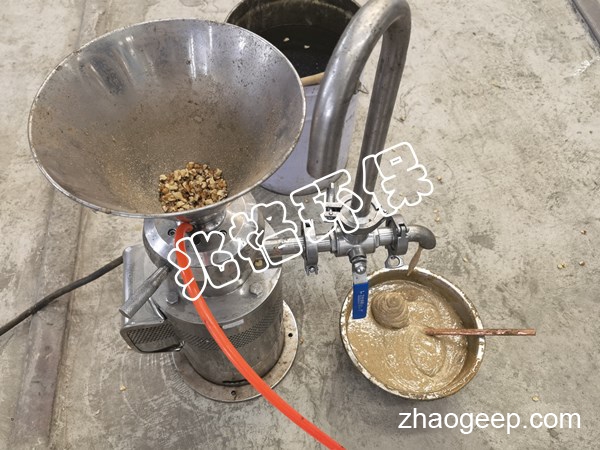 核桃仁調(diào)質(zhì)——核桃仁粗磨——核桃仁細磨——核桃漿均質(zhì)——核桃漿流體冷榨