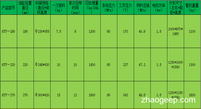 (一)6YY系列液壓榨油機(jī)技術(shù)參數(shù)